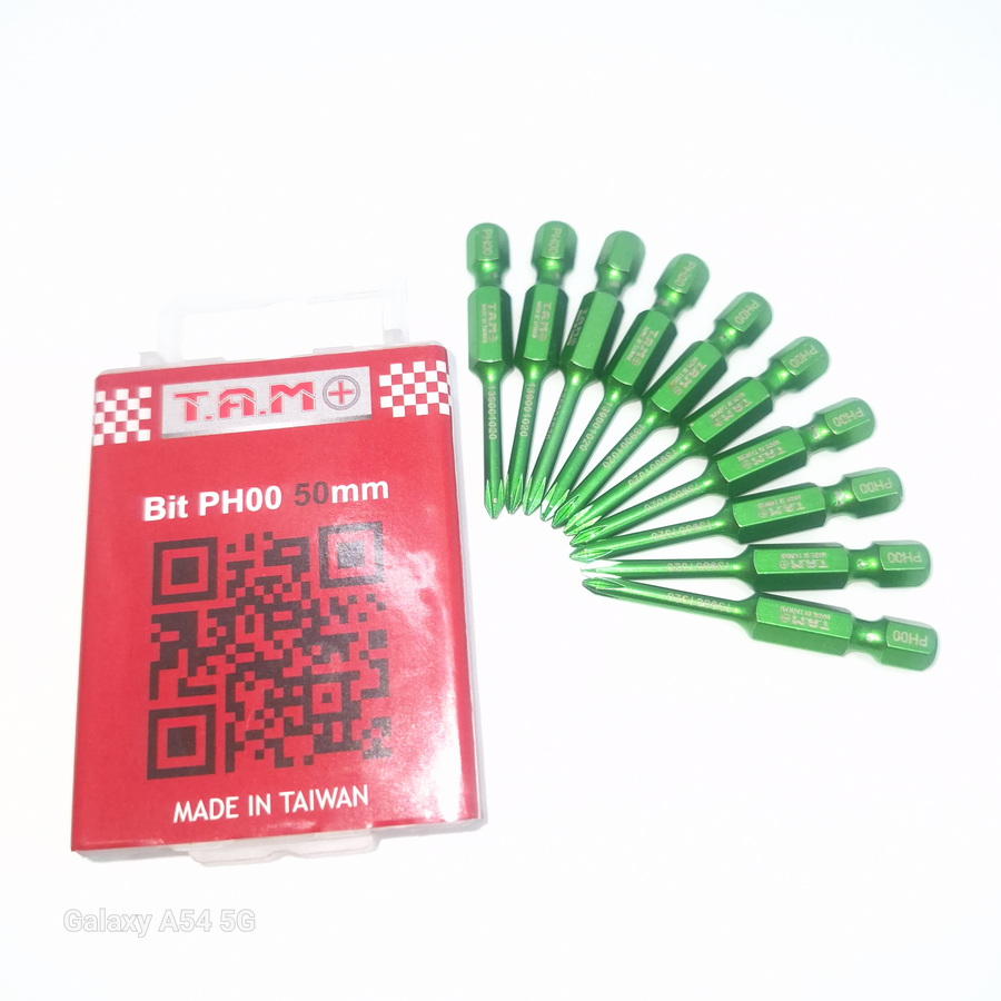 نوک پیچ گوشتی 5 سانت یک طرف چهارسو سبز PH0-50mmL تایوانی برند TAM