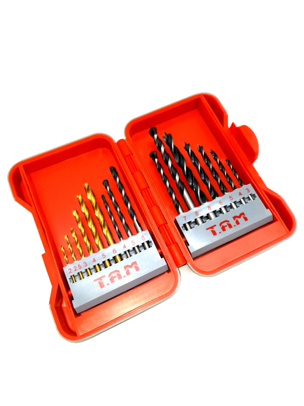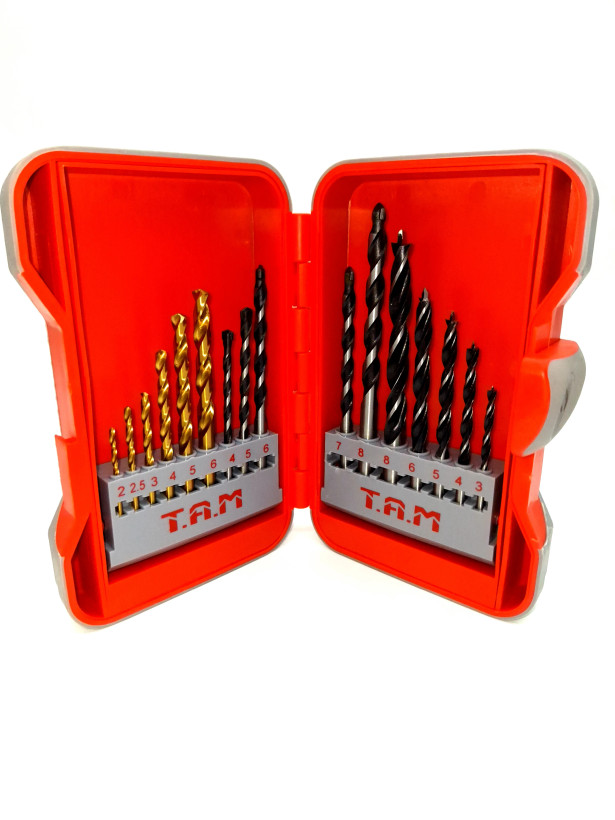 ست ۱۶ عددی مته TAM، کاملترین پکیج ابزار سوراخکاری برای مصارف خانگی و نیمهصنعتی، شامل متههای تخصصی چوب، آهن و الماسه است.